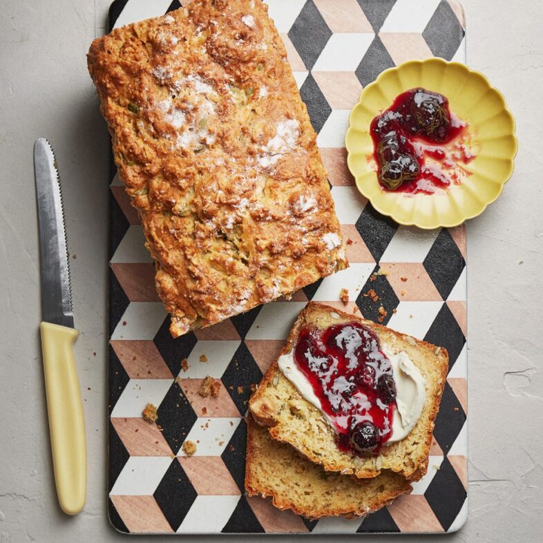 Stek i ca 50-60 minutter i nedre del av ovnen. Ta brødet ut av formen og la det avkjøles under et rent kjøkkenhåndkle.