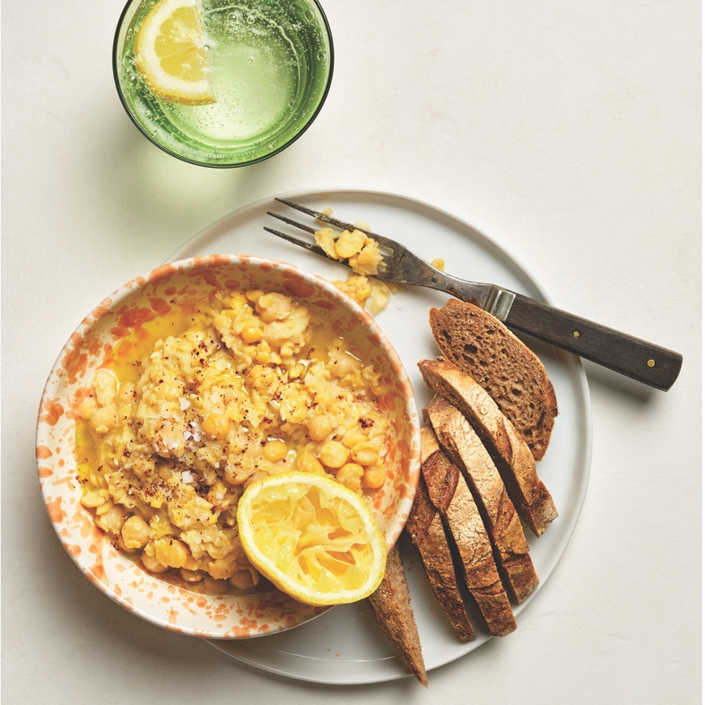3. Topp med olivenolje og litt sumac ved servering. Server med surdeigsbrød.