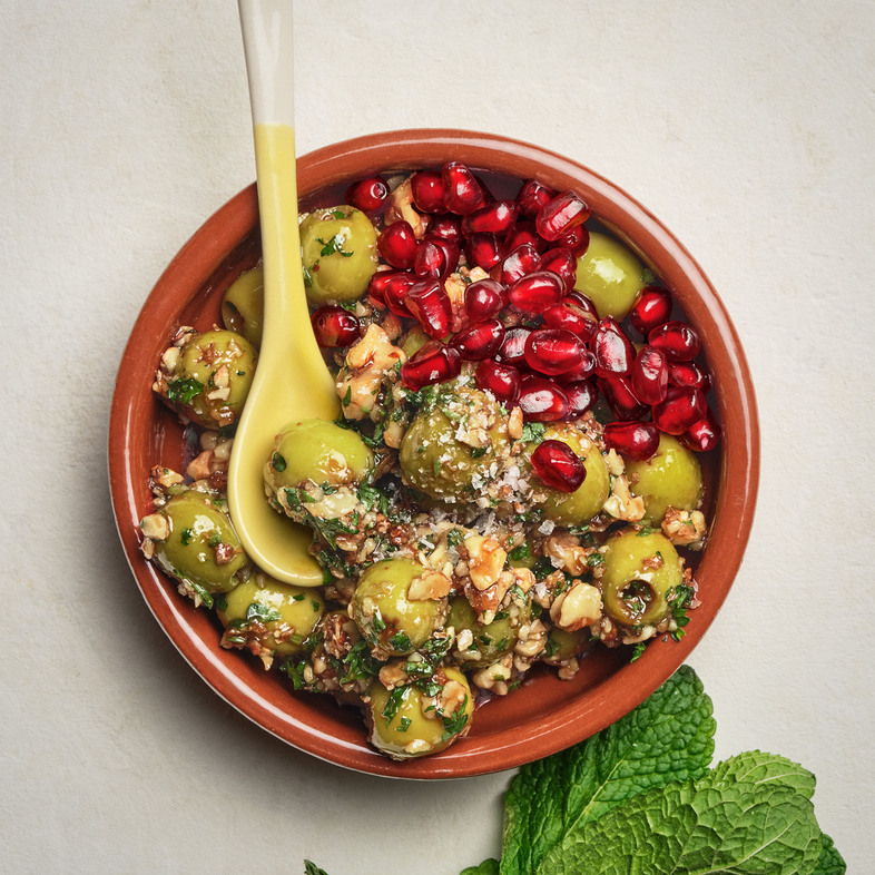 Olivensalat med valnøtter og granateple / Zeytoon parvardeh