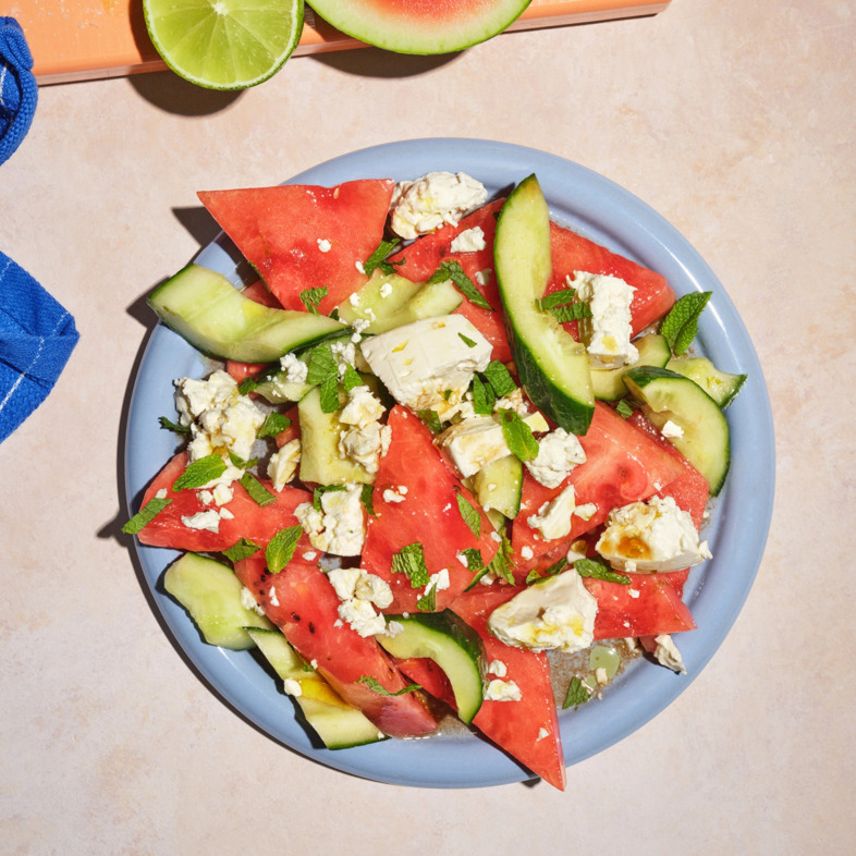 Mer sommerlig enn dette blir det knapt. En sunn, avkjølende salat der søt melon møter salt, syre og urtefriskhet, perfekt til grilling eller bare som den er.