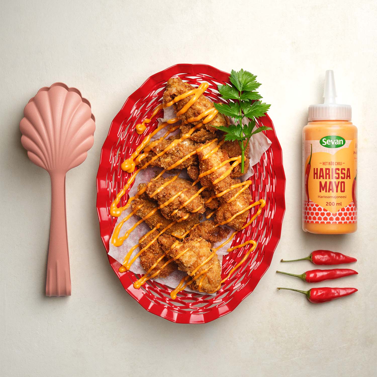 Vår Harissamayo er perfekt tilbehør til grilling, smørbrød og salater. Og mye mer! Harissa er en sterk og smakfull chilipasta fra Tunisia, som også er populær i hele Midtøsten. Her har vi blandet harissaen med en vegansk majones og dermed gjort det til en veldig allsidig smakstilsetning som passer til det meste.